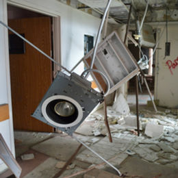 On the floors where patients were housed, the large windows had been broken by both vagrants and the elements over the years and gusts of wind would often cause doors to fly open and slam closed out of nowhere. For once, unlike all the horror movies we've all seen, it WAS just the wind. Walking through the halls at Parkway was like navigating an obstacle course of dangling metal and fallen debris that could easily land you in a non-abandoned hospital needing a tetanus shot and stitches.